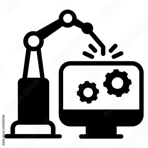 Icon of production computer in filled style