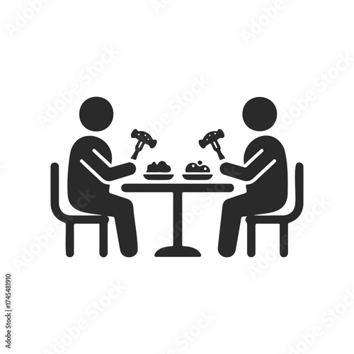 Icon of two figures eating at table with hammers