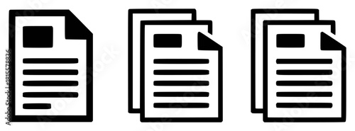 Icon Set of Documents: Single, Stacked, and Layered Papers