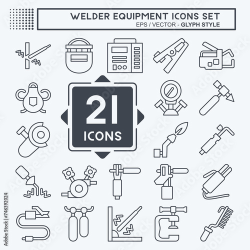 Icon Set Welder Equipment. related to Building Tool symbol. line style. simple design editable. simple illustration