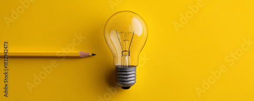 Idea light bulb with a pencil - flat lay