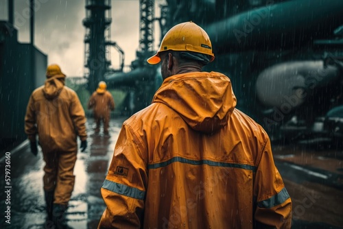 Idustrial workers at petrochemical and offshore site, made with generated ai