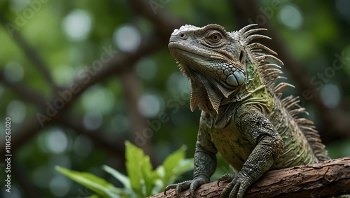 Iguana perched on a tree.