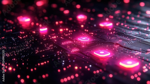 Illuminated Circuit Board With Red Lights High Tech Digital Landscape