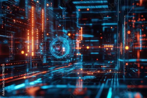 Illuminated digital landscape showcasing vibrant circuitry and glowing data streams in a futuristic environment at night. Generative AI