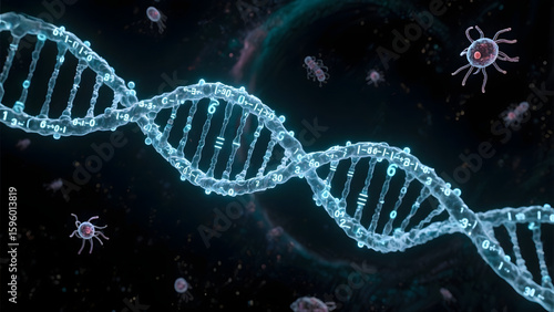 Illuminated DNA Strands with Microorganisms in a Dark Background