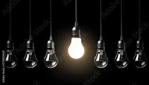 Illuminated Light Bulb Among Dark Bulbs.