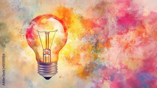 Illuminating Ideas: A Watercolor Light Bulb Radiating Creativity and Inspiration