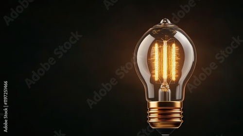Illuminating Light Bulb Glowing Brightly Against Deep Black Background Creating an Atmosphere of Innovation Inspiration and Creative Energy in Darkness