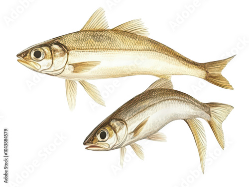 Illustrated pair of European sea bass showcasing detailed scales and fins.