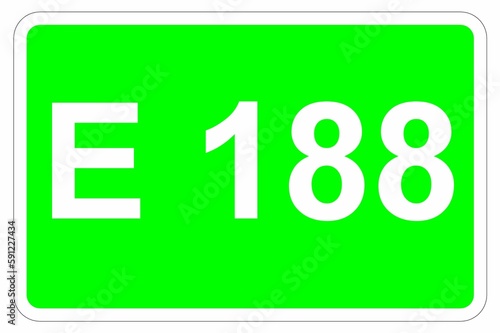 Illustration eines Europastraßenschildes der E 188 in Europa
