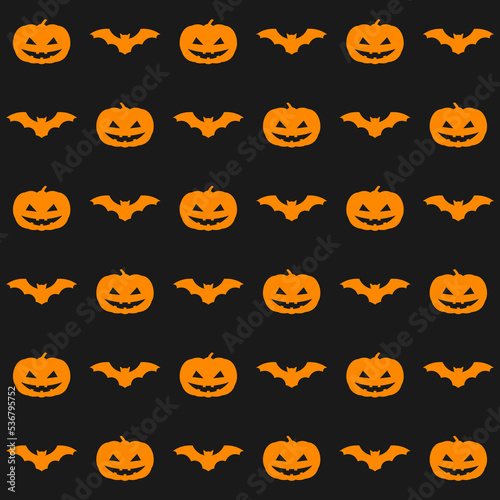 Illustration of bats and pumpkin faces. Seamless pattern.