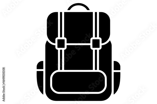 Illustration of a black backpack with straps and pockets for outdoor adventures and travel gear