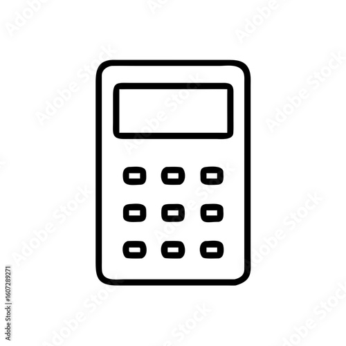 Illustration of a calculator with a display and nine buttons in a simple black and white outline style