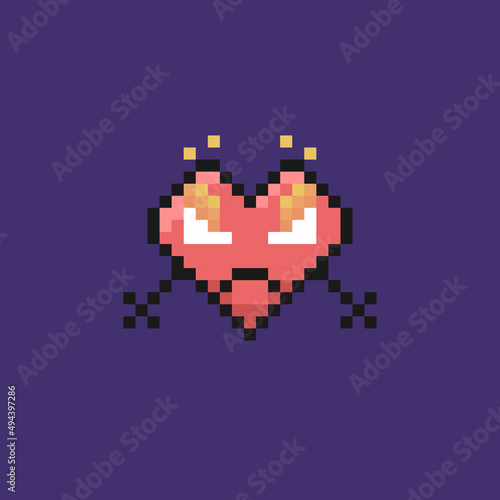 illustration of a heart character with an expression of anger, wrath, or annoyance. fanny, cute, and adorable. valentines day events. pixel art. vector design. elements, ui, games, icons