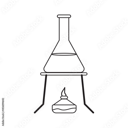 Illustration of a Laboratory Flask Setup with a Lit Bunsen Burner