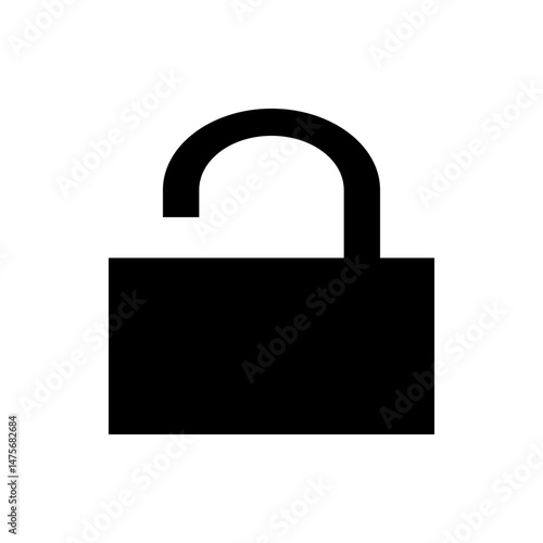 Illustration of a simple black padlock in the unlocked position with a white background design element