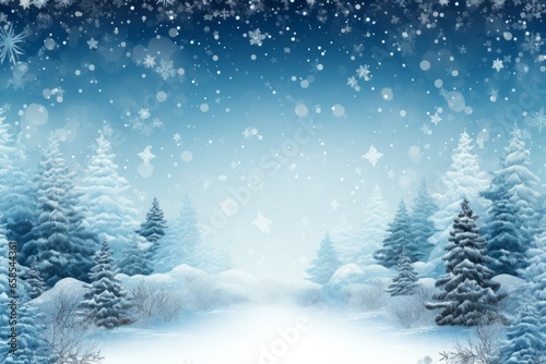 Illustration of a winter wonderland with snow-covered trees created with Generative AI technology