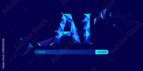 Illustration of abstract stream information with AI, dot and line. Big data, technology, AI, data transfer, data flow, large language model, generative ai, prompt concept