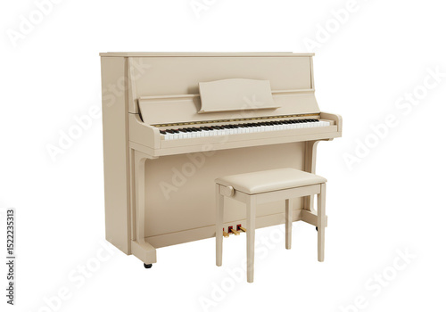 Illustration of Beige Piano and Stool Classical Musical Instrument Isolated