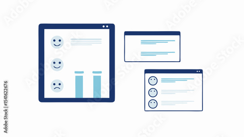 Illustration of dashboards displaying smiley faces and bar charts for data visualization