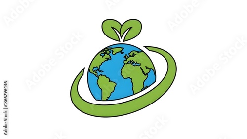 Illustration of eco-friendly earth with plant elements symbolizing environmental protection and sustainability.