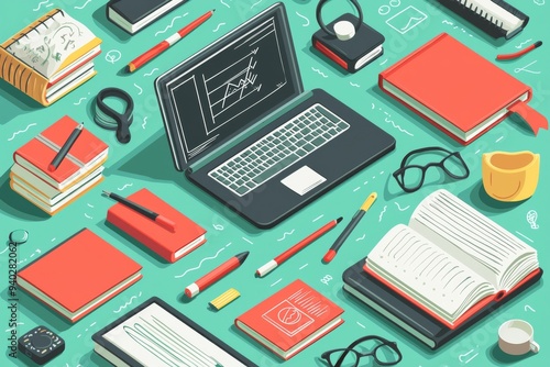 Illustration of educational learning tools set on table created with Generative AI