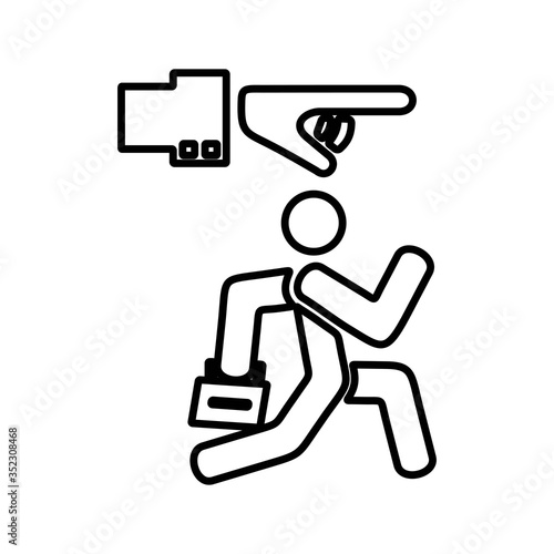 Illustration of employee kicked out of company. Boss firing worker sign. Layoff symbol for modern business concept and web, mobile design.