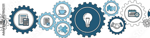 Illustration of gears with business icons on a white background view