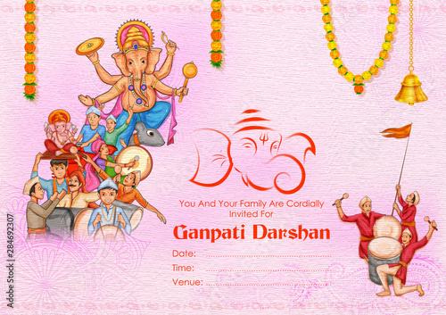 illustration of Indian people celebrating Lord Ganpati background for Ganesh Chaturthi festival of India