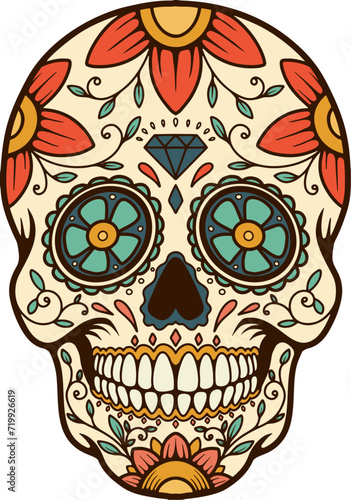 Illustration of mexican sugar skull. Day of the dead. Dia de los muertos. Vector illustration
