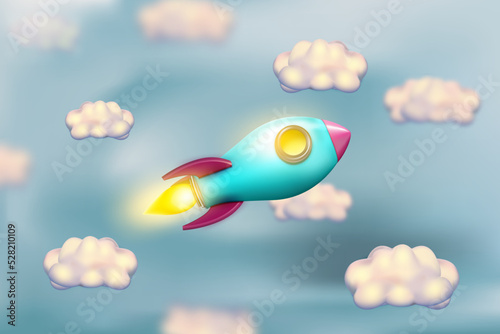 Illustration of rocket on clouds for start up business and bitcoins advertise. EPS 10 illustration