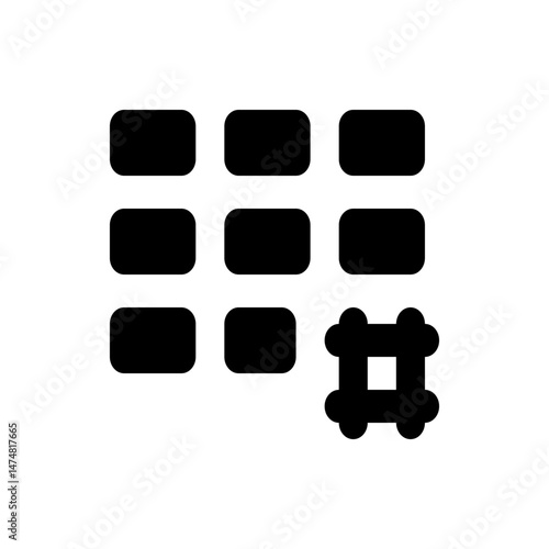 Illustration showing a grid of eight rounded rectangles and a complex shape with a square cutout at the bottom right