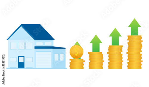 Illustration with house price up for concept design. Profit growth progress. Business concept. Business graph.