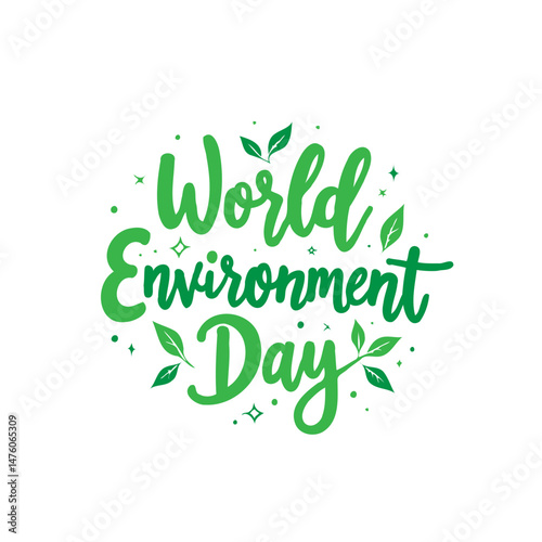 Illustrative world environment day typography with leaf accents symbolic design