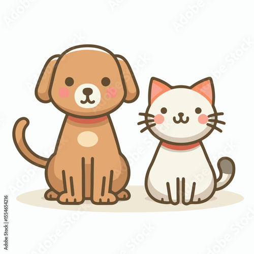 image of a dog and a cat sitting side by side with a simple and minimalist flat design using a white background