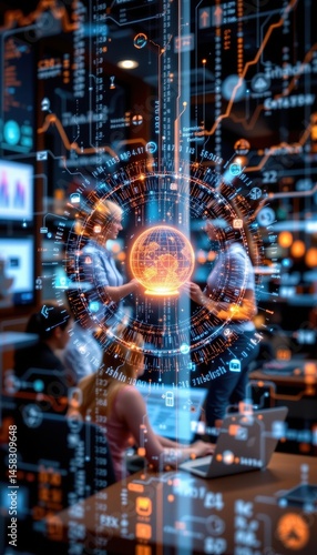 image of data processing over diverse business people using laptop global business and digital interface concept digitally generat