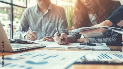 image of retirement portfolio , photo of couple and financial advisor , visual of document review , picture of financial consultation