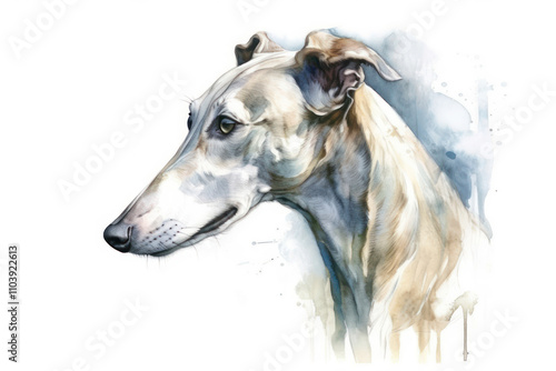 Image of the head of a hound dog, made in watercolor technique.