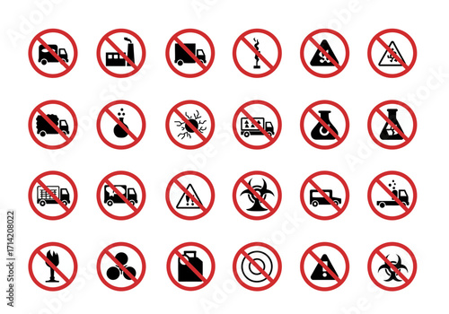 Image shows assorted prohibition icons related to potential hazards and restricted vehicles