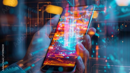 Immersive Digital Art Experience Smartphone Gallery with Holographic Projections for Purchase
