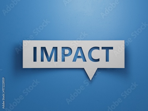 IMPACT Concept With Wooden Ruler.Minimalist Abstract Design With White Cut Out Paper.3D rendering on blue background.