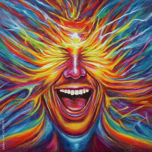 Impressionistic portrait of an ecstatic man with a fiery revelation. Aha!