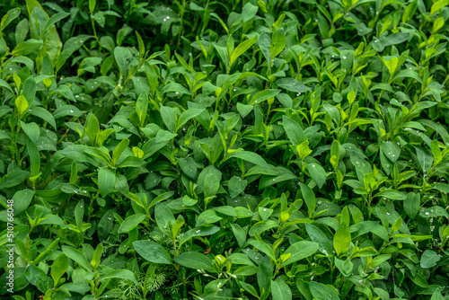In spring, green grass Polygonum aviculare grows in the wild .