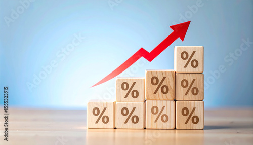 Increasing Percentage Growth Wooden Blocks Charting Financial Success