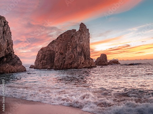incredible beach. rocks washed by ocean waves. sunset. landscape in portugal