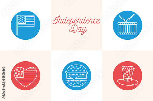 Independence day block style icon set vector design