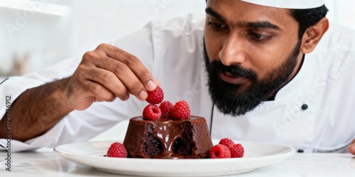 Indian Chef Carefully Decorating Chocolate Lava Cake