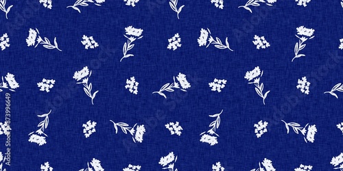 Indigo denim blue leaf motif seamless border. Japanese dye batik fabric style effect print banner swatch.