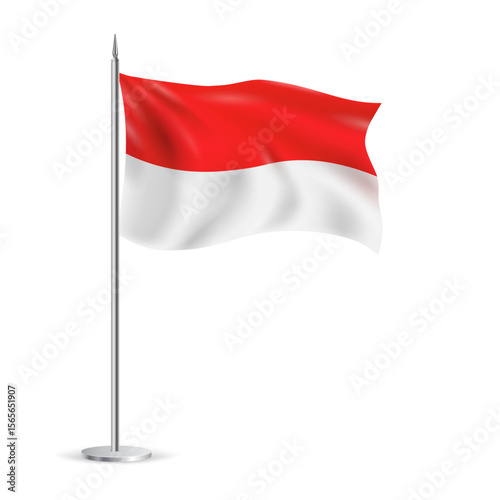 Indonesian Flag Waving on Pole – Realistic Vector Illustration